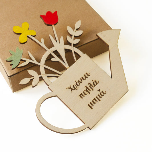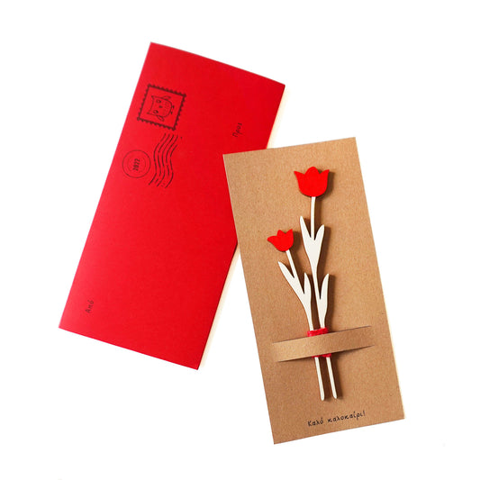 Ξύλινο μαγνητάκι με λουλούδια - κόκκινο