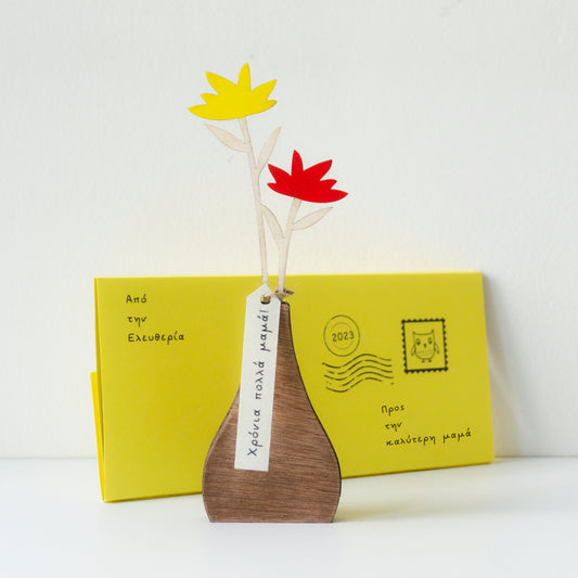 Ξύλινο μαγνητάκι με λουλούδια - κίτρινο