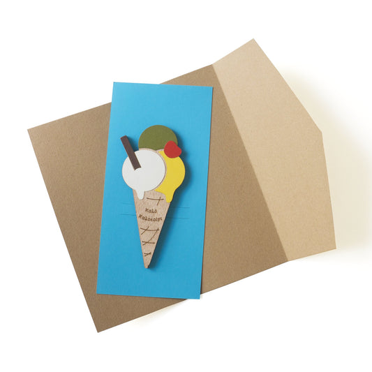 Δώρο για την δασκάλα, ξύλινο μαγνητάκι παγωτό "Καλό καλοκαίρι"