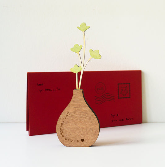 Δώρο για τη δασκάλα, ξύλινο βάζο με λουλούδια