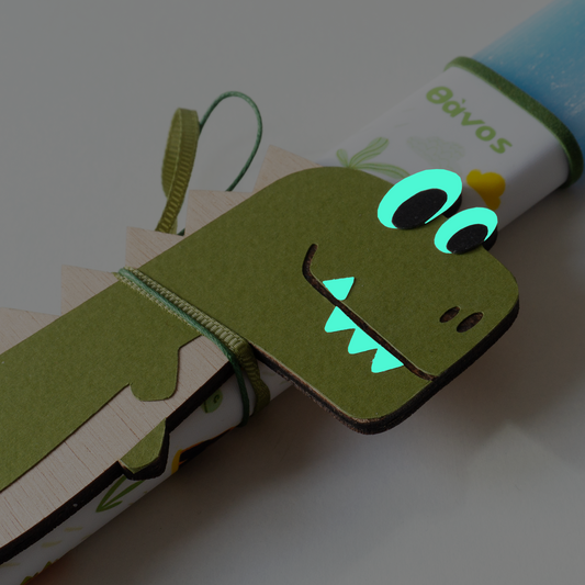 "Dinosaur" easter candle with name, 30 cm blue