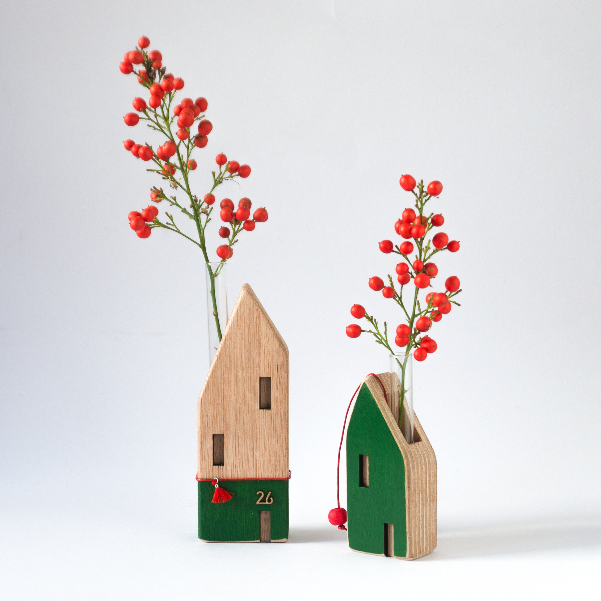 The pomegranate is concrete and the number "2025" is wooden. Decorated with black string and bell.